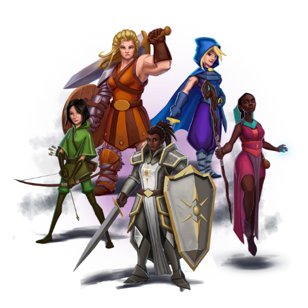 J’apprécie aussi que cela ne soit pas un argument de vente. Il n’y a pas de sous-titre “le jeu des femmes bad-ass” par exemple. Ce n’est nullement un parti-pris marketing. Sur le dos de la boîte on nous parle de “cinq braves héros qui partent à la conquête de donjons”. On nous vend un jeu d’exploration de donjon, avec des dés, une petite aventure med-fan. J’aime que cela soit présenté comme étant tout à fait normal, car après tout, c’est ainsi d’habitude, on ne précise pas. Et le message est d’autant plus fort ainsi à mon sens, puisque c’est à chacun de le recevoir.