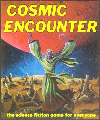 Et puisque l’on évoque l’ameritrash, difficile de ne pas mentionner Cosmic Encounter (1977) tant cette boîte introduisit plein de nouvelles idées, telles que les pouvoirs variables (ce qui inspira ensuite Wiz-War ou Magic the Gathering). Par ailleurs, son extension, More Cosmic Encounter, fut probablement le premier jeu de société (en 1992) où les joueurs ont commencé à triturer l’ordre du tour durant la partie.