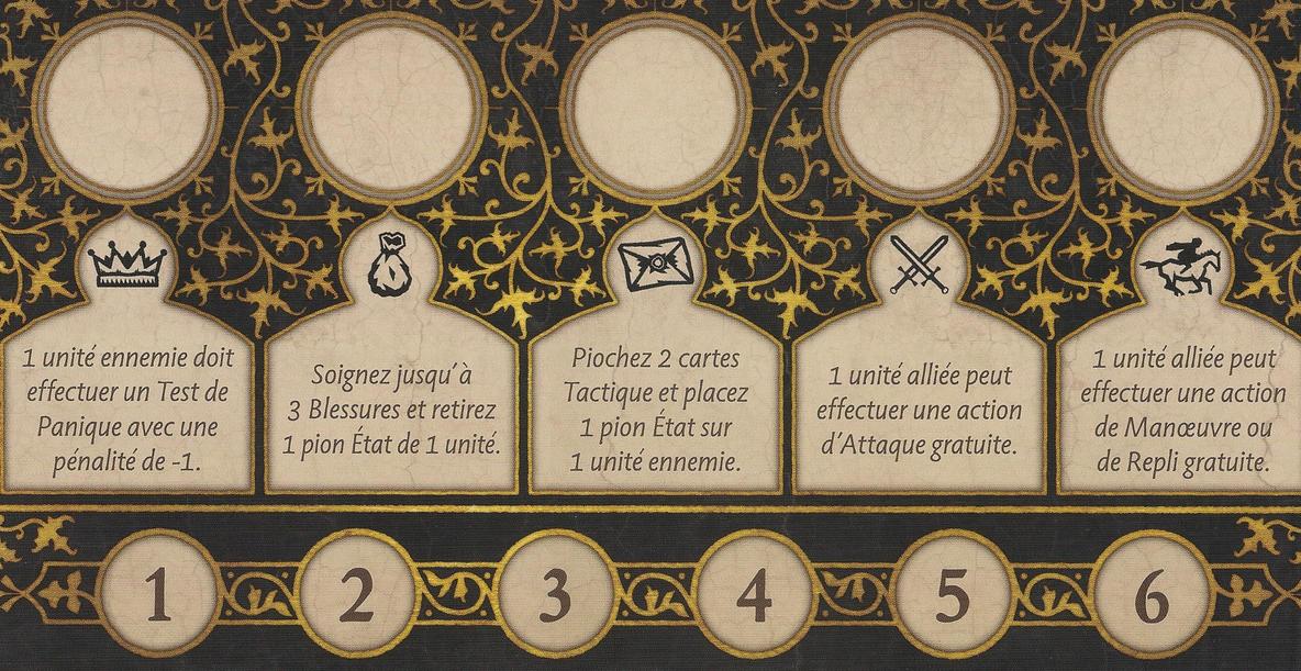 Enfin, les cartes tactiques rajoutent un peu de chaos et de surprises et sont tout à fait bienvenues. Mais surtout, ce qui m’a beaucoup plu, c’est l’utilisation des personnages non combattants : non seulement il faudra les utiliser au bon moment, mais en plus on ajoute une mécanique de blocage très intéressante.