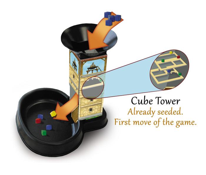 Pendant la partie, les joueurs déposeront des cubes d'action supplémentaires dans la tour – mais certains de ces cubes pourront aussi se coincer dans les étages de la tour tandis que d'autres cubes seront éliminés. Ainsi, les joueurs devront jouer à la fois tactique – en profitant des actions actuellement disponibles de la meilleure façon possible – et stratégique – en utilisant leur connaissance des actions pour jouer au mieux durant toute la partie.