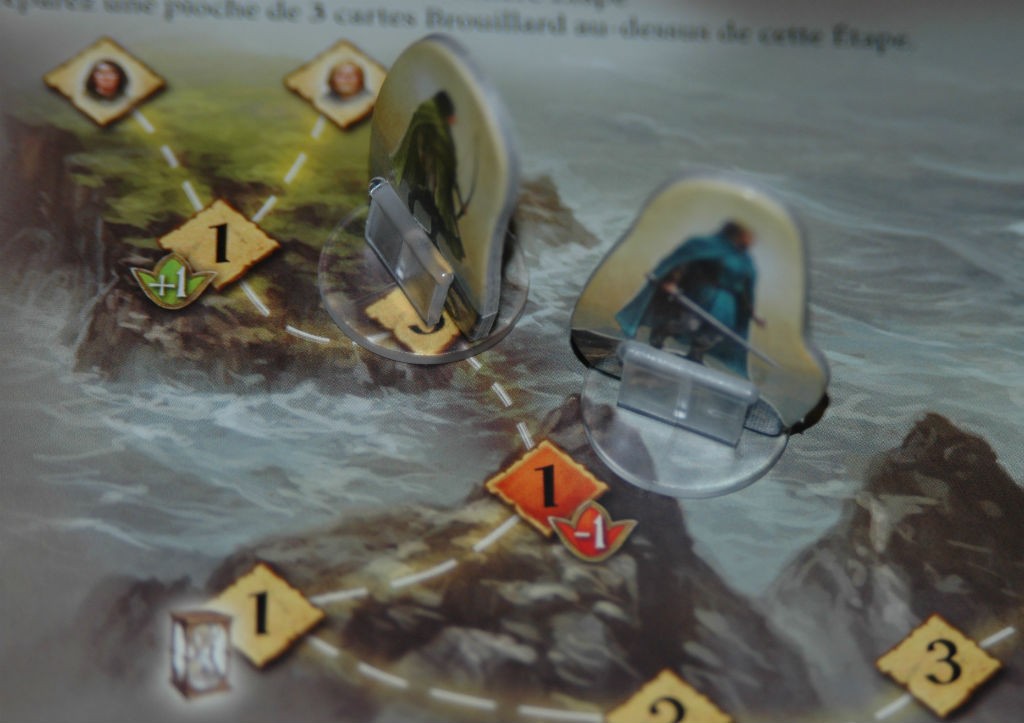 D’ailleurs c’est tout le sel du jeu car on peut placer un héros sur une case à 5 pas et attendre l’autre qui n’aura plus besoin des 5 pas. On peut aussi, de la même façon, éviter de dépenser deux fois des points de volonté ou d’autres malus disponibles. Plus on avance en se soutenant et mieux on s’en sortira. On va ainsi optimiser nos déplacements. Sans parler des combats.