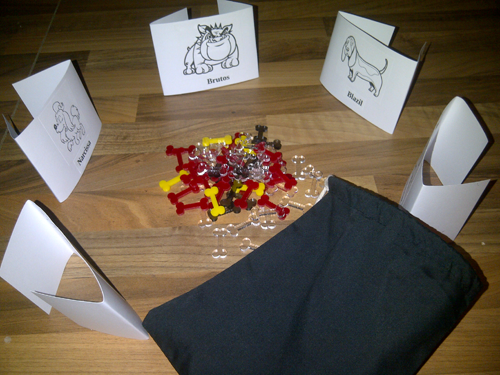 En ce moment, je travaille sur deux protos bien avancés (qui sont en tests chez plusieurs éditeurs) : l’un Orchestra (photo ci-dessous, jeu qui vient d’être sélectionné au FLIP), est un coopératif totalement asymétrique sur la thématique de l’orchestre avec plein de matos farfelus ; et l’autre, Par Odin ! est un OLNI casse-tête, sorte de mélange entre Ricochet Robot et Le compte est bon, avec un matériel minimaliste.