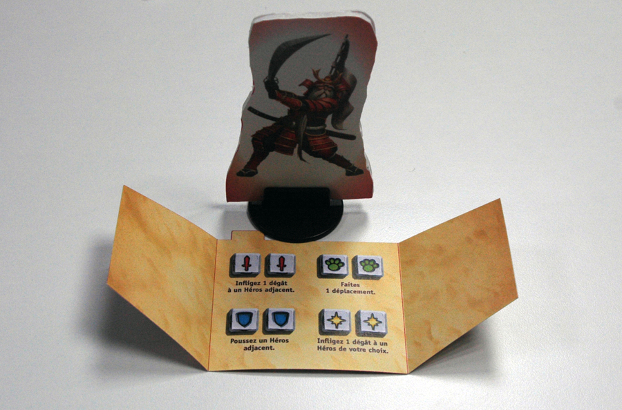 Maxime Rambourg, déjà auteur du joli Big Book of Madness aime quand ça combote ! Si vous poussez un adversaire sur un élément de décor ou sur un autre héros qui pousse lui-même un autre héros, ça fera du dégât en cascade. Il n’est pas vraiment possible de se défendre, mais un certains nombre d’effets sont dissuasifs (si tu m’attaques je te pousse, etc).
