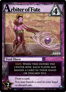 Un effet « Fate » (« Destin ») permettant à chaque joueur de bannir une carte de sa main ou de sa défausse lorsque cette carte entre dans la ligne centrale.