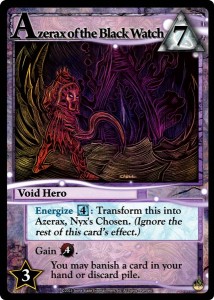 Un héros du néant avant transformation. Si avant de le jouer le joueur a accumulé au moins 4 énergies ce tour, la carte se transformera.