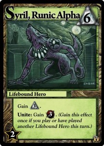 L’effet Unite permet ici de gagner une fois par tour des points de combat supplémentaire si un autre Héros lié à la vie est joué ou a été joué précédemment ce tour.