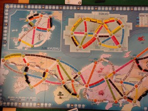 Nous avons donc un nouveau plateau. Assez dense. Avec les voies ferrées qui, non seulement traversent le pays, mais aussi se dispatchent sur la ville de Tokyo, et sur l’île de Kyushu. Ainsi, sur la carte, on constate un focus particulier qui dévoilent de nouvelles lignes sur ces deux zones.