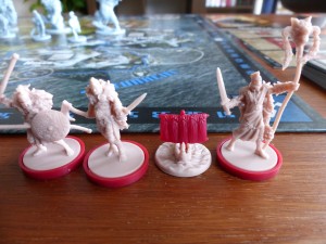J’ai vu sur des forums des gens hurler au scandale car tout ça est finalement cher et les figurines, aussi belles soient-elles, n’apportent rien au jeu. J’ai envie de dire qu’il faut brûler ces gens que je pense qu’il y a quelque chose à savoir quand on joue à des jeux comme celui-ci : ce qu’on aime c’est le thème, l’ambiance du jeu, l’univers dans lequel on plonge, et les figurines sont là justement pour aider à cette immersion, pour renforcer l’expérience du jeu. Elles ne sont pas obligatoires, bien sûr, mais représentent un plus non négligeable. Le jeu ne serait clairement pas le même sans. Si on aime jouer à des purs jeux de gestion avec des kubenbwa complètement abstraits, en effet les figurines ne sont pas utiles, mais je ne crois pas que c’est le public que visait CMON en faisant ce jeu.
