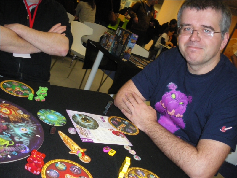 Nous n'avons pas pu revenir les autres jours pour découvrir le jeu mais du coup, nous avons papoté avec Fréderick Condette, l'auteur pendant une demi-heure. Autant vous dire qu'il y a mon zom qui a flashé là-dessus et qu'on aura l'occasion d'y revenir.