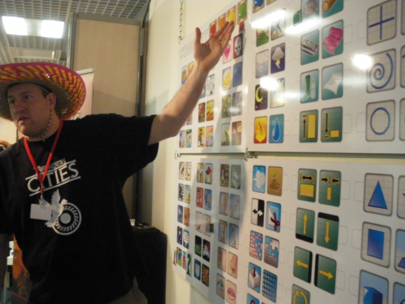 Un des jeux que je connaissais le mieux était Concept, j'avais naturellement prévu de m'occuper de celui-ci. Je ne savais pas qu'il allait gagner l'As d'or moi ! Ha ! Je peux vous dire que j'ai vu défiler du monde… la folie… du geek à Mâdââme, des enfants aux grands-parents, de tout quoi. Et je peux donc vous dire aussi que l'As d'Or, il l'a pas volé. Le Concept géant a bien fonctionné et les tables n'ont pas eu le temps de se vider. L'illustrateur, très sympathique d'ailleurs, a dû rêver toutes les nuits d'icônes…
