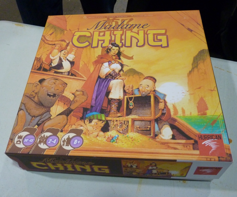 Madame Ching est un proto quasi terminé, nous avons eu la chance de jouer avec les visuels de Monsieur Dutrait (il n'y a que les dos des cartes qui n'étaient pas encore imprimés), bref du beau proto à peine fini d'être découpé (et ce n'est pas une façon de parler) !