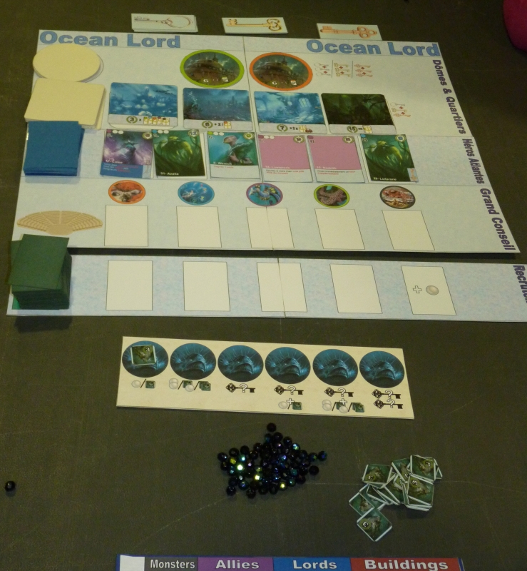 Avec Abyss (anciennement "Ocean Lords"), Bruno Cathala et Charles Chevallier se sont attaqués au monde sous-marin… D'après ce que j'ai vu, il s'agit d'un jeu de combo indirect très sympa, avec du stop ou encore, de la gestion de son argent, du combotage de cartes à acheter en cours de partie et des bâtiments de scoring pour la fin.