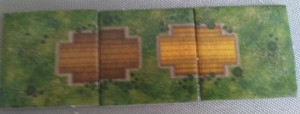 Le cadre que nous avons autour de notre terrain nous donne des points de victoire supplémentaires si l’on a construit certains types de paysages ou bâtiments : on trace une ligne droite imaginaire et si le bâtiment est bien présent, on peut marquer les points de victoire. Une bonne idée ! Voilà qui casse la routine.