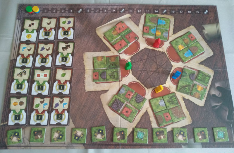 Comment récupère-t-on ses tuiles ? Tout simplement sur le plateau central en fonction de notre pion patricien. Celui-ci n’a qu’une contrainte : il ne peut aller qu’en face, ce qui lui donne deux choix à chaque tour. Si l’on a du pain on peut le placer où le souhaite, car le pain c’est la vie (à moins que ça ne soit le gras ?).