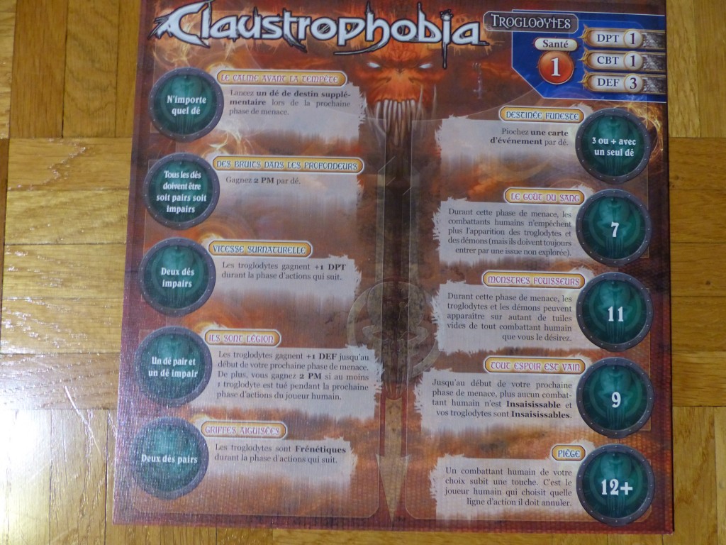 Par exemple si le démon pose 2 dés pairs sur cette fiche, les troglodytes seront frénétiques et attaqueront deux fois pendant ce tour.