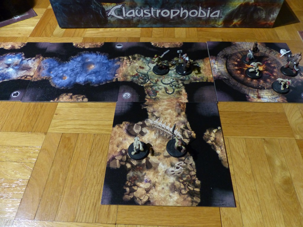 Une des raisons pour laquelle Claustrophobia est un de mes jeux préférés est le concept d’exploration. Dans la plupart des scénarios, le donjon commence en étant très petit et les humains n’ont aucune idée de ce qui les attend. Pendant la partie, lorsque les condamnés exploreront, ceci révélera une tuile, c’est par contre le joueur démon qui choisira le sens de la tuile, ce qui peut lui permettre de tendre également des pièges.