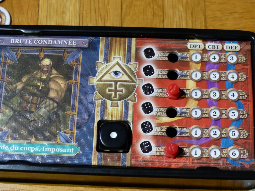 Ensuite le tour du joueur démon est sensiblement pareil sauf qu’il n’attribue pas de dé à ses unités mais il les répartie sur sa fiche de joueur. En fonction des dés placés, le joueur démon pourra par exemple piocher plus de cartes, avoir plus de dés à lancer, faire se déplacer plus vite ses monstres, les faire attaquer deux fois de suite, etc.
