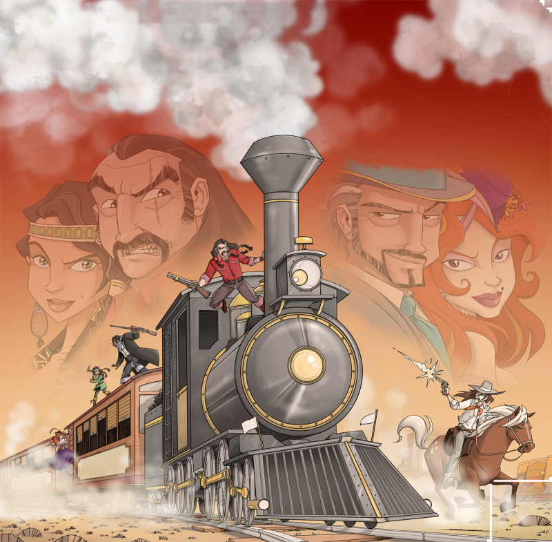 XIXe siècle, l'Ouest Américain (décidément cher aux Ludonaute qui étaient derrière Lewis & Clark l'an dernier souvenez-vous). Vous voilà donc dans la peau d'un vilain bandit prêt à tout pour dérober les plus précieux butins, même s'il faut passer sur le cadavre de vos camarades… Le jeu se veut plutôt familial, il se joue de 2 à 6 joueurs, dés 10 ans, pour des parties de 30 à 45 minutes. Son point fort ? Des wagons en 3D et un mécanisme de programmation qui pousse à la confusion un peu comme dans Space Alert. Allez, en selle !