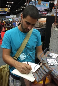 Et là, je ne parle que du centre de congrès : à l’extérieur, toutes les salles de conférences des hôtels 5* étaient réservées pour… des tables de JdR. En fait, tout le centre ville d’Indianapolis est saturé de geeks pendant les quatre jours du plus grand rassemblement ludique nord-américain. Et, comme me l’a dit une orga, « la Gencon, c’est très humain. On est loin de la Comic-Con, beaucoup plus orientée stars. Ici, l’ambiance est à la rencontre et à la déconnade. On s’en fout de faire signer des trucs. » Elle avait un peu raison, la bougresse. Il n’en reste pas moins ce côté mercantile un peu flippant. Sur le jeudi, la file d’attente pour le stand FFG faisait 700 mètres, celle de Cool Mini or Not, quelque chose comme 200 mètres, le stand de Flying Frog Productions était encerclé par des gens qui voulaient leur boîte de Caverns of Cynder. Bref, c’est un peu fou.