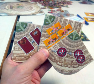 Chaque tuile visible applique son effet au tour en cours. Ainsi, les ressources achetées chez les voisins pourront couter une pièce de plus, ou une de moins, ou encore les joueurs pourront construire gratuitement leurs niveaux de merveille, les joueurs pourront utiliser les chainages de leurs voisins, etc…