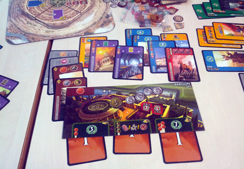 Nouvelle extension pour l’énorme succès ludique 7 wonders, Babel apporte 2 variantes différentes à ce pilier du jeu de société moderne. Nous avons pu tester la variante « tour de Babel » dans laquelle chaque joueur va drafter 3 tuiles (des tranches de tour de Babel) en début de partie pour les utiliser ensuite. Chaque joueur peut défausser une carte pour construire sa tranche Babel.
