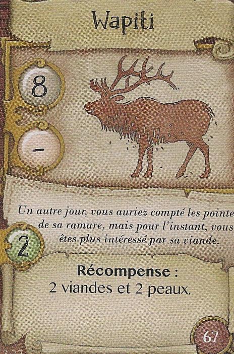 Les combats contre les ennemis (et les animaux que l’on chasse) sont aussi très simples : on jette un dé gris et un dé rouge. La valeur du dé gris est comparée à la défense de l’ennemi pour voir si on lui fait un dégât, celle du dé rouge est comparée à sa valeur d’attaque pour voir si lui nous fait un dégât. Simplissime, je vous dis !