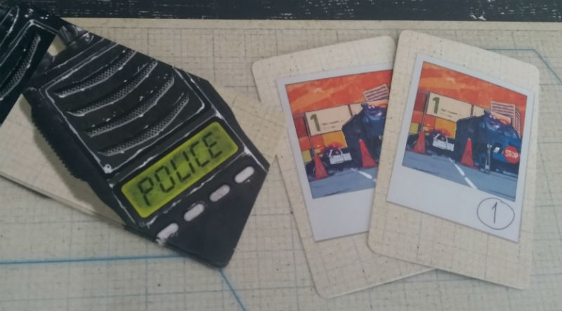 Chaque fois que l’on quitte une tuile, on doit éviter les policiers, car ceux-ci sont lourdement armés et nous tirent dessus (on déplace un cube de notre zone verte vers notre zone rouge). Pas de panique, on va pouvoir bénéficier de tout un tas de contacts pour nous aider à les distraire (nous y reviendrons).