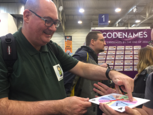 Nous avons craint également de voir un hall 6 ou un hall 4 vide et sans âme comme nous avions pu le voir il y a 2 ans, mais ce ne fut pas le cas. Le hall 7 était un peu moins intéressant que l’année dernière, mais les hall 6 et 4 étaient tout à fait intéressants à parcourir avec nombre de prototypes ou de jeux auto-édités… et même avec quelques stars à rencontrer. On a notamment pu voir The arrivals (Martin Wallace) et Cottage garden (Rosenberg) dans le hall 4.