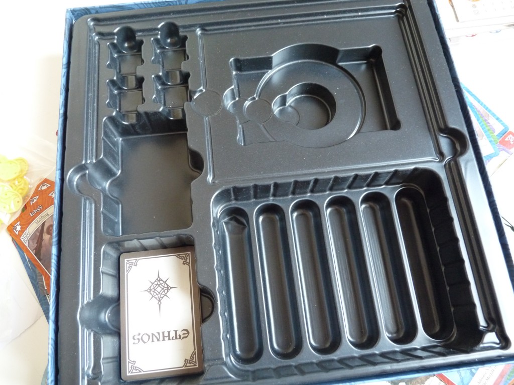 On termine l’après midi en faisant la moue. Le jeu est un ratage où la stratégie est inexistante et le hasard omniprésent. Comment est ce possible (Paolo Mori, succès sur BGG ?!) Nous relisons la règle 4 fois (le fameux syndrome du « qu’est ce qu’on fait mal ? »), nous restons stupéfaits d’une telle note pour ce jeu. D’accord, les factions sont bien pensées, ok, il y a John Howe (j’en viens même à me demander si ce n’est pas pour rattraper le coup), ok, je vois la référence plus qu’évidente aux Aventuriers du Rail. Ce jeu ne serait-il qu’un coup de pub basé sur le nom de l’auteur ?