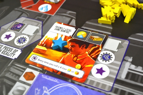 Le chiffre sur les dés représente la Lucidité. Plus il est grand plus les ouvriers travaillant pour nous sont lucides et donc comprennent le monde dystopique dans lequel ils vivent. Conclusion, ils partent et le joueur perd un ouvrier. De même, plus ils sont lucides, plus leur travail est productif (donc le joueur gagne plus de ressources) et peut gagner également en lucidité.