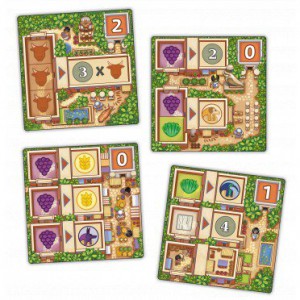 Avec Fertility nous sommes dans un jeu plutôt familial, avec une belle édition, des illustrations lumineuses de Jeremy Fleury avec des couleurs un peu acidulées mais à la fois chaleureuses. Fertility est un jeu qui pétille. Pour ne rien gâcher, nous avons de petites ressources en forme de raisin, bovin, etc. On regrettera juste la boite bien trop grande pour le matériel. Dommage, car l’on ne pourra pas la glisser dans un sac à dos par exemple. Je ne jette pas l’albâtre à l’éditeur, je sais bien que c’est un sujet complexe (prix psychologique du consommateur), mais je me dis que les mentalités peuvent changer …