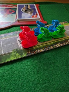 — Mais non ! Ça motive toujours d’avoir un cycliste à une case de toi ! Du coup, tu pousses sur la pédale et tu te mets dans le sillage en te positionnant derrière lui. Tous ceux qui sont avec toi te suivent. Une case gratuite gagnée ! Et on fait ça en effet boule de neige jusqu’au premier cycliste. C’est l’effet mêlée. Groupir, quoi. Mais gaffe ! il faut EXACTEMENT une portion. S’il y en a plus, tu bouges pas !