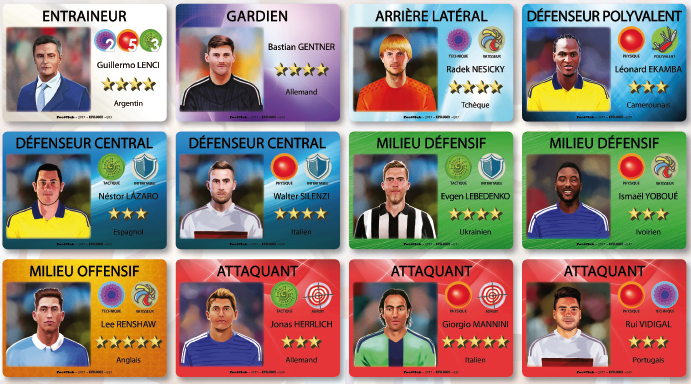 Toutes ces cartes offensives font appel aux caractéristiques d’adresse et de vélocité du joueur se créant l’occasion de but.