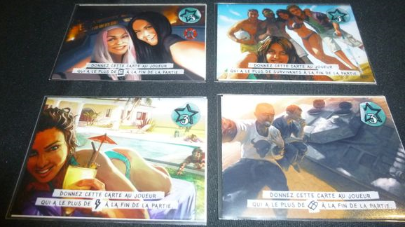 Chaque joueur démarre avec 4 ressources de chaque type sous forme de jetons (Munitions, Essence et Adrénaline) et son groupe de 5 survivants.