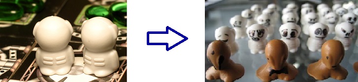 À noter que les meeples aliens et astronautes n’ont pas vraiment de visage si bien que vous pouvez laisser cours à votre imagination pour les personnaliser en leur donnant les expressions de votre choix, à l’aide de feutres par exemple.