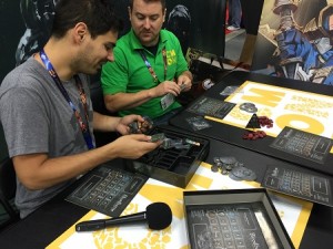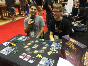 Moments notables : Monsieur Cathala qui découvre qu’il existe des T shirts à son effigie. La relation padawan-maître Jedi entre Julien Prothière (Kréo, Check) et Juan Rodriguez (les Poilus). La déception du moment où les lumières se sont éteintes alors qu’on allait parler de Last Friday de chez Ares Games. Interview maudite ! On a vu Boss Monster qui s’essayait à la réalité virtuelle. Sinon, Legendary avait mis le paquet sur la com avec un truck sur leur stand pour Trouble in Little China. Surdim, qu’on vous disait hier.