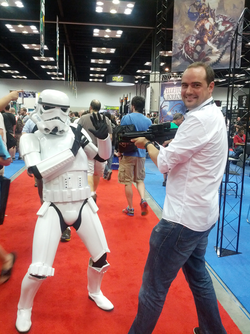 – D’ailleurs, les figurines sont indubitablement à l’honneur ici. « Les figurines de FFG doivent arriver par semi-remorques je pense » nous dit-il. « Les gamers sont prêts à faire la queue jusqu’à l’extérieur du bâtiment pour acheter les fig Pathfinder et les Wizkids. »