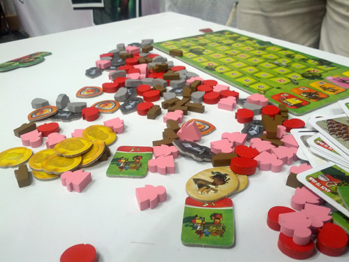 >> Voilà déjà, un premier retour à vif avec le décalage horaire, sachez que Fendoel a aussi craqué sur le Sheriff de Nothingham (il s’en est même pris une petite boite), a vu Mister Bauza (un peu jetlagé peut-être ?) et son petit Samurai Spirit, il a vu le deck building de Shadow Run « il y avait des tas de boites mais personne pour en parler », et puis il a croisé de drôles de filles avec des proéminences mammaires dont il m’a longuement parlé…