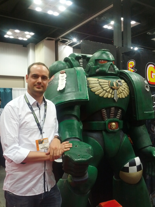 Notre reporter connaissait Essen mais découvrait la GenCon. L’impression qui semble le marquer le plus, c’est le fait qu’à Indianapolis, c’est toute la ville qui aime les geeks. Les habitants vous demandent d’où vous venez, est-ce que vous allez à la GenCon, à quoi vous allez jouer. Et oui, ça fait un an que toute la ville se prépare pour l’événement, et ça fait presque 50 ans qu’ils voient le salon gagner en ampleur. Aujourd’hui, c’est carrément la rue devant le temple qui va être envahie pour fêter l’arrivée de Donjon et Dragons 5e édition. « Les jeux et l’esprit qui l’accompagne envahit la ville » nous dit Fendoel, « c’est vraiment beaucoup plus chaleureux qu’à Essen. On mange mal, mais les gens sont très gentils, très ouverts ».