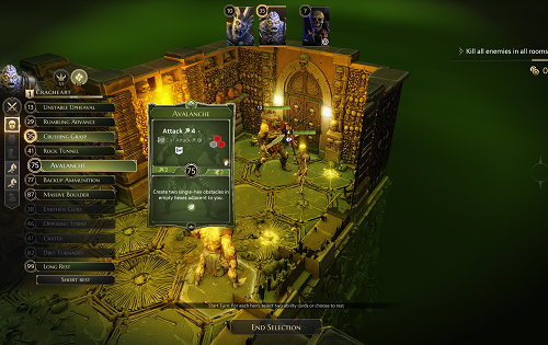 En revanche, le mode aventure est un pis-aller fort intéressant, sinon tout aussi prometteur, mélangeant le système bien ficelé de Gloomhaven à un mode rogue-like créant le monde et les aventures à chaque fois. Pour l’instant, les missions proposées sont plutôt simplistes (du “tuez tous les monstres” comme objectif, et peu de variations dans la configuration des salles/le registre des ennemis).
