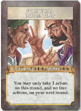Notons que chaque joueur a toujours deux actions, sauf au premier tour où il n’en a qu’une et que, là aussi, ce sont les rouges qui commencent (sauf que ce coup-ci, en rouge, ce sont les Romains).