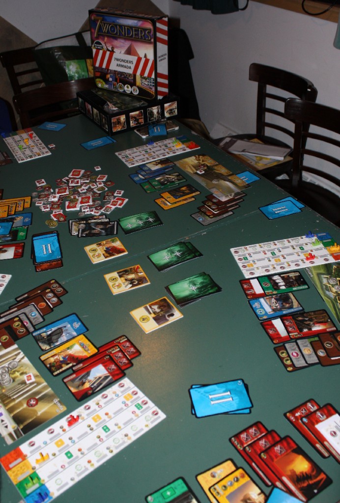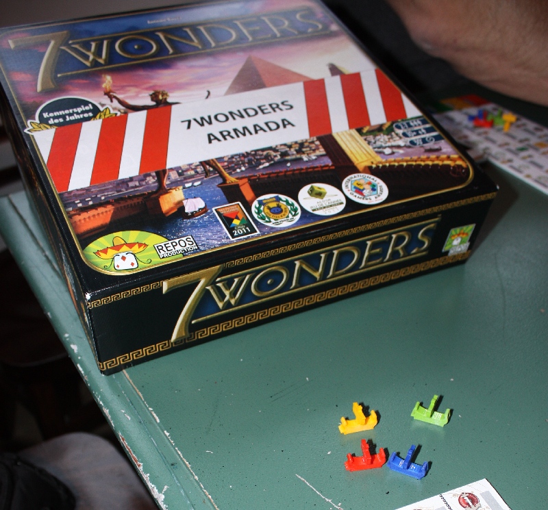 C’est là que j’ai pu tester notamment, la prochaine extension pour 7 Wonders, en train de connaître ses derniers équilibrages, qui devrait sortir lors du prochain salon d’Essen 2018. Petit ressenti au sortir de la partie…