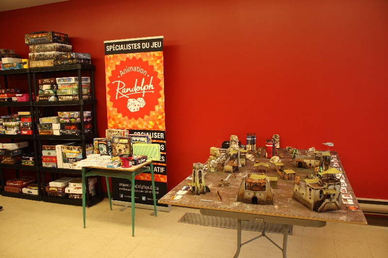 Au dessus du salon des auteurs se trouvaient deux salles, l’une occupée par le Randolph qui avait amené pas mal de nouveautés. J’y ai notamment croisé des tables de This War of mine, Thunderstone Quest ou High Frontier (plus vieux mais tout aussi incroyable).