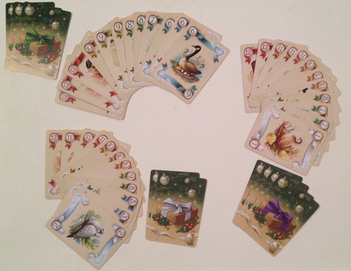 12 Days of Christmas se joue avec un paquet de cartes spécial qui contient tous les cadeaux de Noël de la chanson.