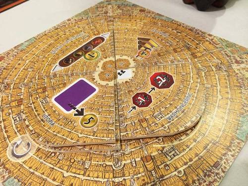 La première est la tour de Babel : chaque joueur reçoit 3 tuiles Babel en début de partie qu'il pourra construire ou non (chaque tuile rapporte des PV).