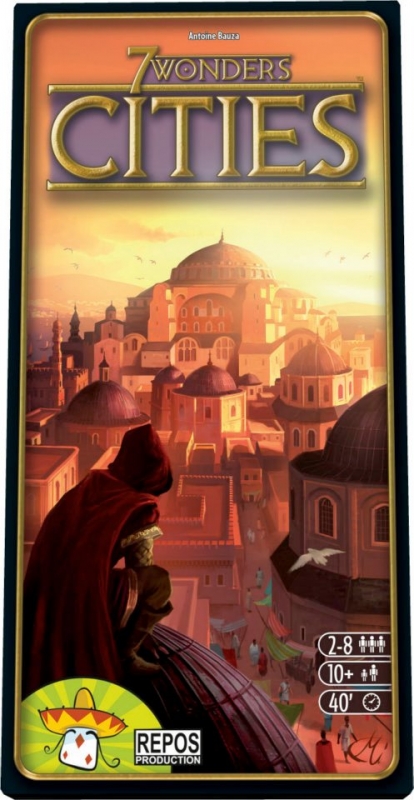 7 Wonders : Cities, la deuxième extension pour 7 Wonders, comprend des règles optionnelles pour jouer en équipe, permettant ainsi d'ajouter un 8ème joueur, un nouveau type de carte, et de nouvelles cartes d'anciens types (deux nouvelles merveilles : Petra et Byzance, 3 nouvelles guildes et 6 nouvelles cartes de leader). Cette expansion est plus agressive, avec une interaction grandement accrue entre les joueurs, qui essaient toujours de marquer plus de points que les autres.