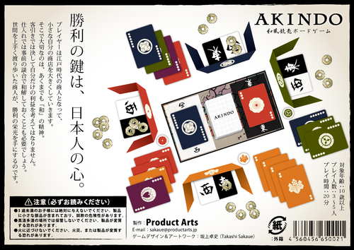 Dans Akindo, les joueurs sont des marchands au Japon de la période Edo. Tout le monde commence avec un petit magasin, et va faire de son mieux pour le rendre plus grand.