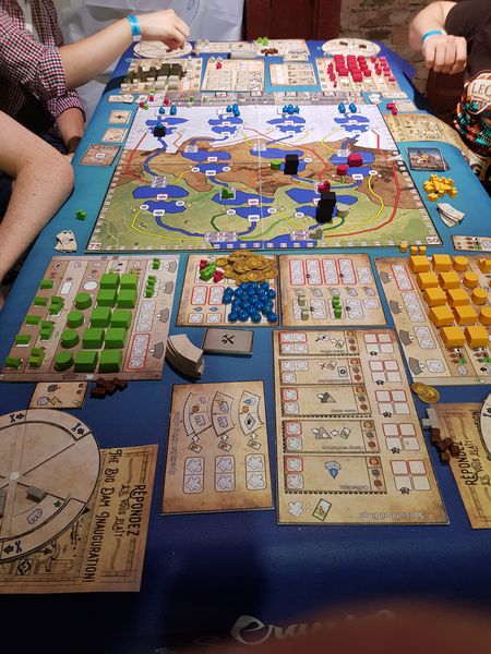 Barrage m’évoque ces jeux où l’on a une interaction forte, j'entends où celle-ci ne se résume pas à prendre un emplacement pour faire une action (comme beaucoup de jeux de pose d’ouvriers). J’y vois une parenté avec Brass : on va jouer avec les autres, on va se gêner mais on va aussi parfois se rendre de menus services. Pas pour faire plaisir, mais parce que l’on y a un intérêt.