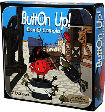 - - 3 gros boutons rouges représentant les troupes de Napoléon Buttonaparte - 3 gros boutons noirs représentant les troupes du Général Ludwig York Von Buttonburg - 3 gros boutons blancs représentant les espions, agents doubles travaillant au profit des deux armées - 10 petits boutons bleu clair (valeur 1) et 8 petits boutons bleu foncé (valeur 5) matérialisant les points de victoire obtenus à la fin de chaque bataille - 1 tuile ronde « Champ de bataille » servant aussi d’aide de jeu - 2 tuiles carrées « Généraux »