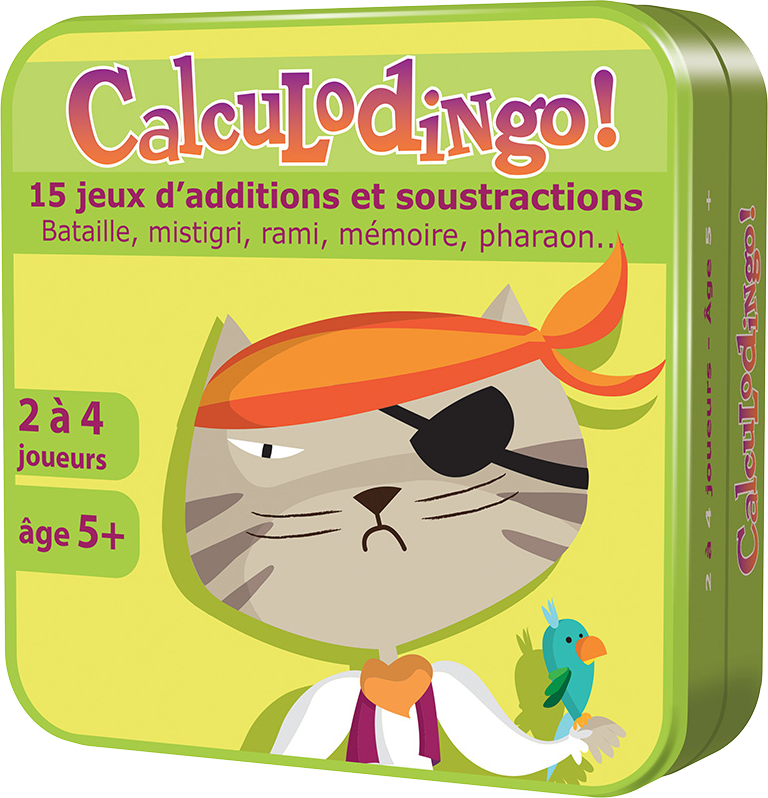 Calculodingo est une véritable mine qui vous permettra d’accompagner vos enfants ou vos élèves (aide personnalisée en particulier) de la grande section de maternelle jusqu’au CE2 (et au-delà pour les révisions). Le jeu propose en effet 15 règles différentes avec le même jeu de cartes. Ces règles permettent de travailler la numération, les additions, les soustractions et les doubles.